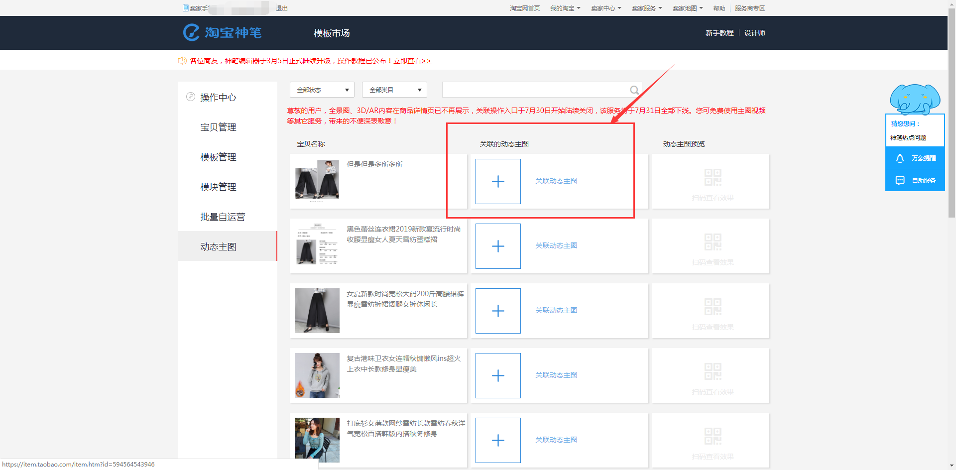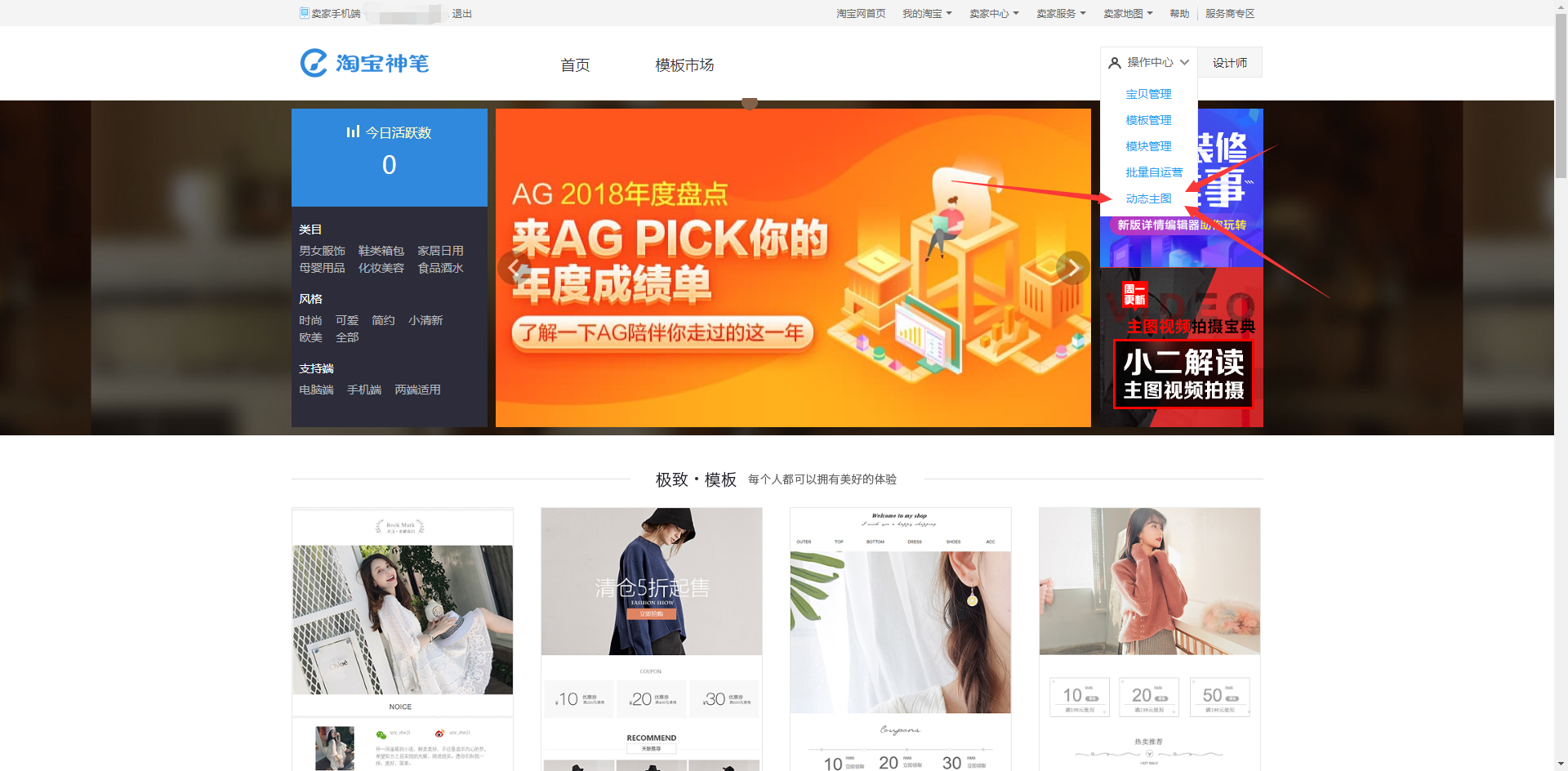 进入以后我们点击右侧的操作中心,然后点击【动态主图】