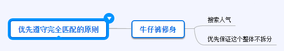 比如:“牛仔裤修身”这个词有搜索人气,而且是个整体,哪就尽量不要去拆分,有限保证完全匹配,如果中间加了一个空格,变成“牛仔裤 修身”那这个词就不完整了,搜索出来就不熟同一个数据了。