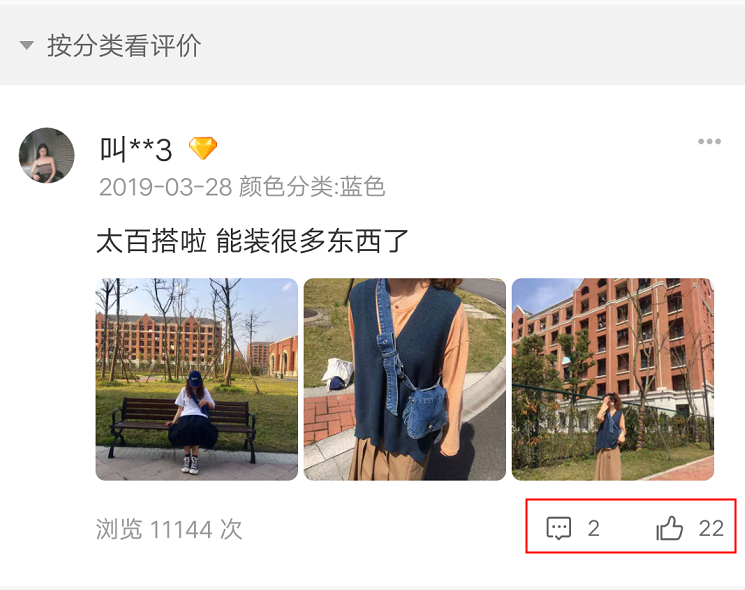 方法二、优质评价置顶,针对几个有买家秀,好的评价,多找点人对这些评价进行点击,并点赞、评论进行互动行为,互动越多置顶的几率就越大。